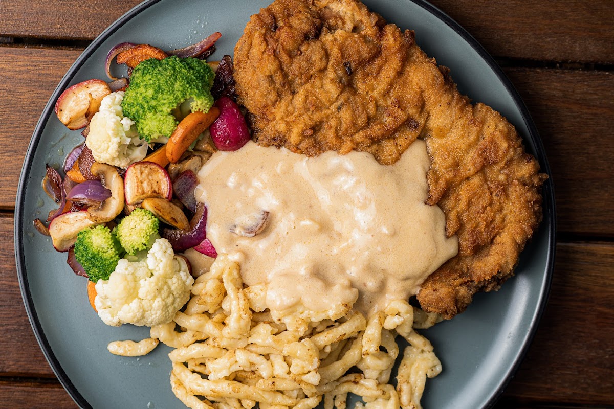 At Herbert Platz, the culinary journey begins with the renowned Schnitzel, a traditional German breaded beef cutlet, expertly prepared to perfection. Accompanied by homemade spatzle—a delightful German noodle—and freshly sautéed vegetables, this dish offers a symphony of flavors and textures that will vary according to your choice of protein: tender filé mignon, savory pork, or juicy chicken. Each option is crafted to cater to every palate.